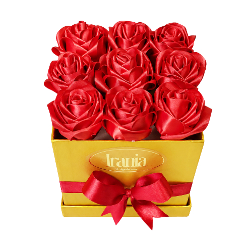 hermosas 9 rosas eternas hecho con cinta satin la primera calidad, en caja cubo.